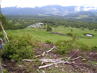 | 稜線から見た菅平 | 下るに従いダボス牧場が近付いてくる | クロマメノキ |