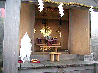 | 山頂にある白山神社 | お花畑が続く観光新道 | 殿ヶ池避難小屋を見下ろす |