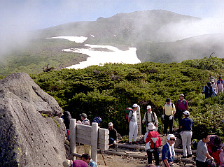 | 山行記 | 2回目の白山なので、今回は岐阜県側から登ろうと思い、大白川を目指したのだが、道路が災害のため通行止めということがわかり、反対側の別当出合から登ることにした。ところが、別当出合へのシャトルバスが出る市ノ瀬までに行くにはガソリンが足りないので、東海北陸道を関SAまで戻って給油、そこから石川県の市ノ瀬へ向かった。結局、大きく時間をロスしたので、市ノ瀬に着く頃には、夜が白々と明けていた。 1日目 ●ほとんど睡眠がとれないまま市ノ瀬に車を停めると、朝一番のシャトルバスで別当出合まで行き、吊り橋を渡って砂防新道を登り始める。 ●豊富な高山植物を楽しみながら中飯場、別当覗、甚之助避難小屋、南竜道分岐と次々と通過し、観光新道との合流点となる黒ボコ岩で大休止。 ●ここまで来れば、後はしばらく緩やかな草原を歩き、最後の登りを登り切れば、この日宿泊する白山室堂だ。とりあえず宿泊の受付を済ますと、白山山頂である御前峰を目指す。 ●白山も2回目になるので、御前峰からは御池めぐりをすることにする。紺屋ヶ池、翠ヶ池などを巡り、大汝峰に登って室堂へ戻った。室堂では、植物観察会に参加し高山植物の知識を深めた。 2日目 ●未明に御前峰へ登り、山頂白山神社の祠前で行われる「お日の出」の儀に参加したが、山頂はガスと風でお日の出は見られなかった。それでも、神事は見とどけ、室堂まで戻ると、下山を始める。 ●ガスに包まれたビジターセンターから黒ボコ岩まで下ると、今度は観光新道を下ることにした。いつの間にかガスも取れ、青空の下、高山植物が咲き乱れる草原を下り、市ノ瀬に戻った。 |