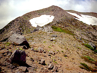 | 中飯場 | 黒ボコ岩 | 黒ボコ岩から見る御前峰 |