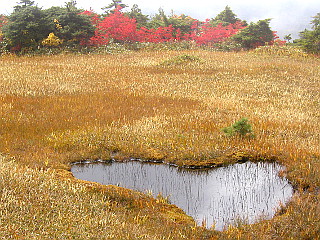 | 山行記 | ●山仲間と一緒に日本百名山の苗場山を目指すことになった。登山口は、長野県側の小赤沢3合目登山口。ここからならおよそ3時間半のコースタイムで山頂まで行くことができる。 ●まだ薄暗さが残る登山口の小赤沢3合目から登り始める。急な登山道を登っていくと、背後に朝日が当たりはじめて赤く染まる鳥甲山が大迫力で迫る。いつかはあの山にも登ってみたいという気持ちがこみ上げてくる。 ●概して急な登山道はよく整備されているが、鎖場などもあり気は抜けない。調子良く各合目の標識を通過して登り続け、八合目を過ぎると木々の高さも低くなり、やがてこの山の特徴である山頂部の高層湿原帯の木道を歩くようになる。 ●この山の特徴は、4平方キロメートルにも及ぶ山頂部の湿原があることで、紅葉の始まった湿原には黄色や褐色になった草原が広がり、池塘と紅葉した背丈の低い木々がところどころアクセントになっている。 ●時折かかる霧の間から見える紅葉が美しい槍の塔を見ながら木道を進めば、山頂手前の苗場山頂ヒュッテに着く。そこからさらに樹林帯をひと登りすれば苗場山山頂に到着するが、意外にも山頂は樹林に囲まれて展望は無い。 ●苗場山山頂からは、先程の苗場山頂ヒュッテのベンチで昼食と休憩を摂り、湿原の秋を楽しみながら木道を歩き、来た道を戻る。今回の紅葉の高層湿原は魅力的だったが、高山植物の咲き乱れる初夏にも訪れてみたい山だった。 |