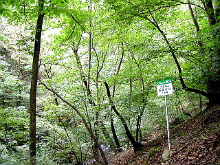 | 山行記 | ●前日両神山に登り、車中泊したところから、早朝、雲取山を目指す。青梅街道からお祭を左折し、車の入れるところまで入って車を停め、後山林道を進む。 ●やがて林道終点に出て、そこから本格的な山道が始まる。そこから木々の緑が美しい沢沿いの道を登り、沢を渡って最後の急登を登れば、三条の湯に着く。まだ時間が早く、売店もまだ開いていない。 ●三条の湯の建物の脇からさらに進むと、山腹に忠実に付けられた道を延々と歩くようになる。この日は朝からガスが多く、暗くて少々気味の悪い樹林の中に、鹿の鳴き声が響いていた。 ●やがて三条ダルミとよばれる主稜線に出るが、そこは雲取山と飛龍山との分岐になっていて、天気が良ければ富士山などを見ることができるということだが、このガスでは望むべくも無い。 ●ガスの中、稜線上の最後の急坂を登り切ると雲取山山頂に到着だ。山頂には、山頂を共有する東京都、埼玉県、山梨県の山頂標識がそれぞれあり、清潔そうな避難小屋も建てられていた。 ●ガスもますます濃くなり、視界も良くないので、頂上直下にある雲取山荘にも寄らず下山することにした。これでバッジが購入できないかと少し心残りだったが、来た道を戻る途中、三条の湯の売店で無事購入することができた。 |