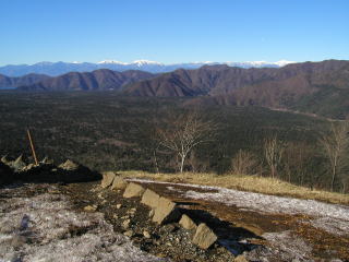 | 山行記 | ●おそらく富士山周辺の山の中で最も富士山を間近に見ることができるのがこの足和田山だろうとは思っていたが、行程が短く、周りの御坂山塊や天使山塊、愛鷹山塊などと比べると、登山対象としては若干魅力に欠けるのがこの山だった。今回は、初級者を連れてということなので、逆にこの山を登ってみることにした。 ●車で紅葉台下の駐車場に車を止める。売店がありここに止めていいのかよくわからなかったが、帰りにお土産でも買っていけばいいかと、とりあえず出発する。一登りで紅葉台に着く。ここからも富士山がよく見える。有料の展望台もあるがそんな必要もないので三湖台を目指す。 ●三湖台は紅葉台のすぐ上で、10分足らずで着いてしまう。三湖台の山頂はだだっ広くて木も無く、山頂全体が展望台だ。まだ真っ白な霜柱が残る地面の上から、圧倒的な迫力で迫る富士山を始め、青木が原樹海の向こうに見える天使山塊、南アルプス、振り返れば西湖の向こうに御坂の山々や三ッ峠山など、胸のすく展望が広がっている。 ●三湖台からはなだらかな道を歩いて、1時間足らずで五湖台と呼ばれる足和田山山頂に着く。足和田山山頂は木々が高く、三湖台よりは展望がはっきりしないが、これもまたいい味の景色が広がっているし、富士山をよく見たいのなら展望台もある。ここで展望と宴会を心行くまで楽しんで下山にかかる。 ●下山時に寄った三湖台は、朝とは打って変わって地面の霜柱がすっかり消え、まるで違う場所のようだった。富士山は相変わらず雲ひとつない状態で、これは下山後も続き、温泉に寄っての帰り道には見事な赤富士を見ることができた。 |