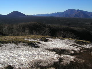 ![]() 一面の霜柱の三湖台から見た富士山 |
