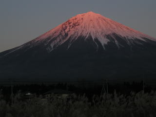 | 足和田山から見た大室山と天使山塊 | すっかり霜の消えた三湖台と富士山 | 帰りに井出インター付近から見た赤富士 |