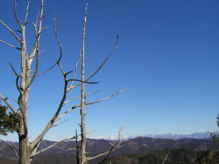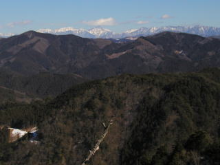 | 山行記 | ●白鳥山と大峠は津具村をはさんで対峙しており、行程もあまりかからないので2山をセットで登られる場合が多い。今回も例に漏れず2山を登るつもりで、まずは白鳥山を目指す。 ●白鳥神社に車を置き、神社の階段を登って山道に入ると、最初はジグザグのやや急な斜面を登る。稜線に出ると道は緩やかになり、あっけなく山頂に着いてしまう。 ●雪の積もった白鳥山山頂は狭く、北面が切れ落ちており展望がいい。北には茶臼山や南アルプスの山々。南には大峠は勿論、三ツ瀬、平山の両明神山、大鈴山、宇連山など展望は思いのままだ。 ●帰路は周回コースの反対側を通って下りることにする。やや急なジグザグの道を下りるが、やはり呆気ないほど短時間で車を停めた白鳥神社に着いてしまう。途中富士見岩からは富士山が見えた。 |