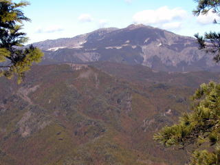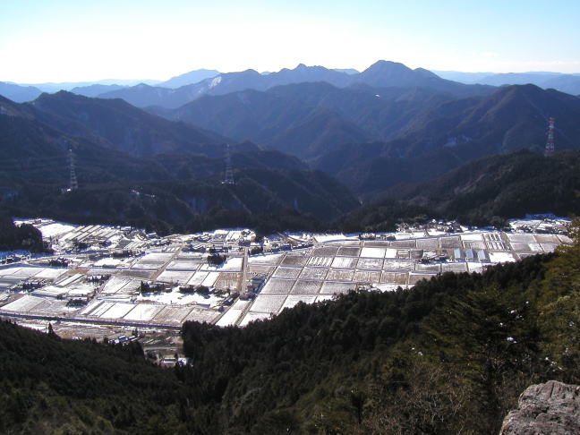 ![]() 山頂から見た南方の眺め 大鈴山、平山明神山、宇連山など、眼下は津具村の田園風景 |