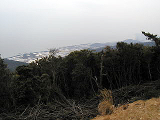 | 山行記 | ●渥美半島最高峰の大山は、渥美半島の先端近くにあって、どっしりとした山容と大きなアンテナで渥美半島各所から確認することができる。しかしながらこれを登るとなると、終始車道を歩くコースしか無いようで、しかも行程も短いのでなかなか行こうという気にはならなかった。しかし、愛知の130山完登を意識しだした今、いつまでも残しておくわけにもいかないので今回登ってみることにした。 ●白山比盗_社の鳥居の近くに駐車スペースがあったので、そこに車を停めさせてもらって出発する。まずは白山比盗_社の鳥居をくぐって、幅員の広い車の通れそうな道を登る。未舗装の道は荒れ気味で傾斜もきついので、四輪駆動車でなければ上るのは難しそうだ。 ●そんな道をジグザグに登ると山頂の一角なのか傾斜が緩み、さらに進むと大きな電波塔の建つ広場に出る。大山の一等三角点はそこからさらに西に少し行った所にあるが、そこからの展望はあまりよくない。さらにその先にも電波塔が建っているが、フェンスで囲まれたその周りからは展望が広がる。 ●天気は曇りで、遠くまでの見通しは利かないが、伊良湖ビューホテルや宮山などの伊良湖岬方面、渥美火力発電所、雨乞山方面、蔵王山方面などを見ることができた。もう少し天気がよければ。三河湾に浮かぶ島々や知多半島、遠くは志摩半島方面まで見えるに違いない。 ●ここから雨乞山へ続く道もあるらしいが、今日はとりあえず来た道を戻ることにした。登山対象としては車の通ることのできる道路とか山頂の人口構造物など、およそ山らしくない山だが渥美半島最高峰というだけあって展望のいい山だった。 |