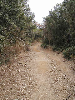 | 広い荒れた車道を登って展望の渥美半島最高峰へ | ||