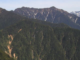 ![]() 山頂から見る後立山連峰 爺ヶ岳、鹿島槍ヶ岳、白馬岳 |