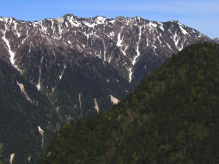 | 山行記 | ●3000m級の山々が連なる北アルプスの前衛峰で、標高も2200m位と低いが、信濃富士と呼ばれるように富士を連想させるような端正な山様は、安曇野からも大きな存在感を示している。 ●コースタイム的には同じ登山口から登る燕岳とそう変らないので、ついついそちらへ行ってしまう。今回も当初は燕岳で計画したが、残雪が多く時間がかかりそうだったので、この有明山に変更した。 ●中房温泉の登山者用駐車場に車を停め三段ノ滝の横を通って急な登山道を登る。さすがに百名山とは違うし北アルプスでも登る人が少ないので、道はあまりよく整備されておらず、迷いそうな箇所もあった。 ●最初は樹林帯の中を、ぽつぽつと咲くシャクナゲや足下に咲くコイワカガミ、バイカオウレンを見ながら登るが、やがて所々で樹林越しに残雪の北アルプスが見えるようになる。 ●有明山山頂は北岳、中岳、南岳の3峰からなり、それぞれに奥宮が祀られている。そして、三角点は北岳と中岳の間にある。せっかくなので南岳まで行ってみることにした。中岳と南岳の間は道が荒れて歩き難かったが、行けないことはなかった。 ●天気も上々。山頂からは、北アルプスの峰々や富士山、南アルプス、八ヶ岳など、360度の大展望が広がり、眼下には安曇野を見渡すことができた。 ●心ゆくまで展望を楽しんだ後、山頂を後にし来た道を戻った。 |