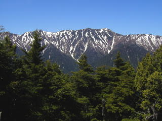 | 青空の下 残雪の北アルプスと360度の展望を楽しむ | ||