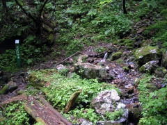 | 山行記 | ●山岳標高ベスト100完登を意識し始めると、とにかく暇を見つけては計画を立て、登ってしまう。生憎の雨でも、迷った挙句結局登ってしまう。この日も雨の予報だが、とりあえず登山口まで行ってみようと考え、登山口まで行けばカッパを着て出発してしまう。 ●桂小場からは、樹林の中をひたすら登ることになるが、ぶどうの泉、大樽小屋、胸突八丁など、案内表示が多く励みになる。登山道の高山植物も今シーズン初めてのアルプスなので、目新しく楽しいが、写真を撮ろうとすると、薄暗く、しかも雨で花が傷んでしまっているので思ったような写真が撮れない。 ●そうこうしているうちに主稜線と合流し、樹林帯を飛び出す。ここまで来れば目標の将棋頭山山頂は近い。将棋頭山山頂は、これを目標に登る人が少ないのか、山頂標識も白い標柱が一本立っているのみだ。雨は次第に強くなり、霧も濃くなり加えて風も強くなってきたので、山頂もそこそこにして西駒山荘の庇で雨宿りしながら休憩することにした。雨宿りをしていると西駒山荘の管理人が現れた。西駒山荘は明日営業開始ということだった。 ●時間は10時前、天気がよければ木曽駒ヶ岳まで行くつもりだったが、この天気ではここで引き返すしかない。仕方が無いので来た道をひたすら下りていくと登山口の桂小場に着く直前から天気が回復し始め、桂小場に着いた時には青空も見ることができた。 |