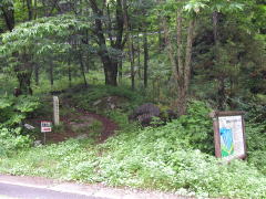 | 将棋頭山山頂 | 西駒山荘 | 行者岩 | 道水管横の案内板 |