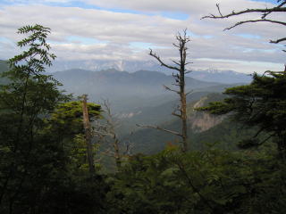 | 北アルプスの稜線は雲の中 | 四普賢から見た高妻山 | 五地蔵山から見た妙高山 |