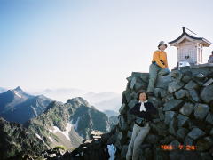 | 山行記 | 1日目●前夜発で沢渡まで入り、一番のタクシーに乗り、釜トンネルのゲートが開くのを待って上高地まで向かう。上高地の駐車場でタクシーを降り、準備を整える。さあここから横尾までの長い林道歩きが始まる。林道とはいえ横尾まで平坦ではなく、ここでオーバーペースになっては今日の目的地である穂高岳山荘まで行くことが出来ない。道沿いの高山植物を見ながら歩くこと3時間程で横尾に到着する。 ●横尾で若干休憩をした後、涸沢への登りに取り付く。天気も上々、緩やかな登りを気持ちよく歩いて涸沢に到着する。涸沢カールは何時来てもテントが賑やかだ。後はザイテングラードと呼ばれる岩場を登り、今日の宿舎である穂高岳山荘の建つ白出のコルを目指す。ここまで来ると、ハクサンイチゲやシナノキンバイ、チングルマ等大きな群落をなし、まるでお花畑のようだ。ザイテングラードは、上部に行くに従いその傾斜を増すが、今日最後の登りと思い、ひたすら登ればやがて穂高岳山荘の広いテラスに飛び出す。 ●まだ時間的に余裕があるので、お隣の涸沢岳にも登っておくことにする。涸沢岳より北は穂高らしい急峻な岩場が続くが、涸沢岳から穂高岳山荘までは不思議と歩き易い登山道となっている。涸沢岳から帰ると、お預けにしておいたビールで乾杯だ。 2日目●早朝、常念岳の上から昇る御来光を拝んで奥穂高岳への登りに取り掛かる。いきなり鉄梯子から始まる登山道は急登が連続するが、振り返れば槍穂高連峰はもちろん、遠く立山剣や白馬岳などの後立山連峰などが一望に出来る。そんな絶景を度々振り返りながら頑張れば、やがて日本第3の高峰、奥穂高岳に到着する。ここまで来ると、乗鞍岳や焼岳など、以南の山々まで含めた360度の大展望が広がる。 ●奥穂高岳の展望を満喫した後、吊尾根を前穂高岳へ向かう。前穂高岳はピストンなので荷物を置いて往復し、岳沢への本格的な下りを下る。岳沢ヒュッテは宿泊は受けていないが、売店は営業しているので、生ビールで喉を潤し、最後の下りを下り、上高地へ下りることにする。 |