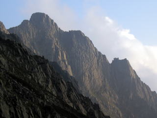 | 朝日に染まる奥穂登り口 | 奥穂高岳から見る笠ヶ岳 | 奥穂高岳から見る笠ヶ岳 |
