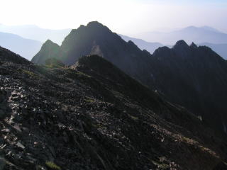 ![]() 奥穂高岳山頂から見たジャンダルム |