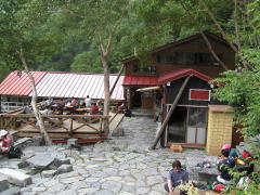 | 前穂高岳山頂 | 岳沢と岳沢ヒュッテ | 岳沢ヒュッテ | 岳沢ヒュッテで美味しい生ビール |