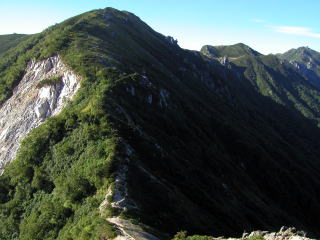 ![]() 濁沢大峰の下りから見る檜尾岳 |