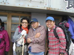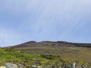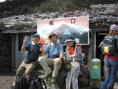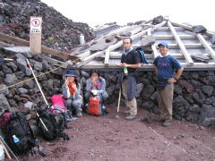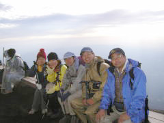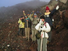 | 前頂上富士館 | 剣ヶ峰山頂 | 剣ヶ峰直下の急坂 | 御来光が見られて大喜び |