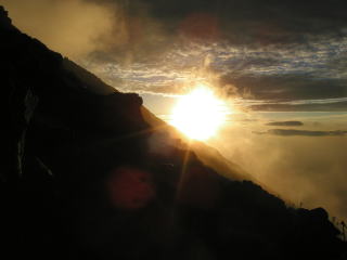 | 愛鷹山塊と駿河湾 | 富士山頂を見上げる | ガスの中から見えた太陽 |