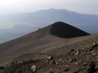 | 須走道から山頂を見上げる | 宝永山と愛鷹山塊 | 宝永山付近から山頂方面を見上げる |