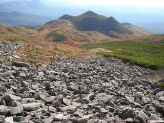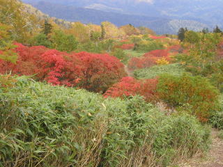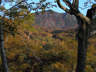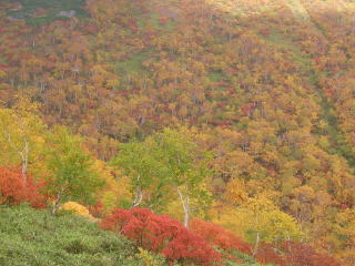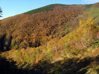 ![]() 前トム平付近から見た紅葉の山肌 |