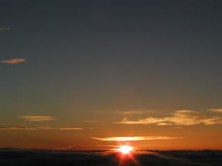 ![]() 北岳肩の小屋から見た日の出直後の富士山 |