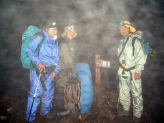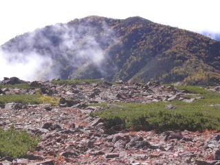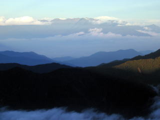 | 山行記 | ●山岳標高ベスト100完登を狙う上で最大の難関がこの白峰南嶺の山々だ。これらの山々さえ登ることができれば後は何とでもなる。しかし、さすがに登山道が整備されていないというこのコースは単独行では心配なので仲間を募って挑戦してみることにした。 1日目●まずは前夜のうちに下山口である田代発電所付近まで車で行き仮眠。翌朝、呼んであったタクシーに乗り広河原まで行く。夜明け前、広河原山荘で身支度を整え出発する。大樺沢二股からは急な斜面を稜線まで登り、稜線からは最初の目標である小太郎山を目指す。 ●さすがに小太郎山に登る人は少ないようで、いきなり踏み後が薄くなる。稜線から見たときは綺麗に道が続いているように見えたが、歩いてみると岩稜を廻り込んだりハイマツが邪魔したりでなかなか進まない。とはいっても道は気を付けていけば迷うことは無いので何とか小太郎山まで往復し、稜線からは歩き易い道をひと頑張りで、今日の幕営地の北岳肩の小屋だ。 2日目●天気も上々、この日は農鳥小屋までなので十分時間をかけてご来光を楽しめる。日の出前から雲海と富士山や山々がくっきりと見える。最高の御来光を拝んだ後、ゆっくりと仕度をして出発する。 ●まずは北岳、時間があるとはいえ油断は禁物。翌日のロングコースを歩ききる体力を温存しておかなければならないので、オーバーペースにならないよう日本第二位の高峰を登る。天気もよく気持ちのいい頂上だがきりが無いので先に進む。北岳山荘、中白根、間ノ岳と越えて農鳥小屋に付くが、この日は1日中いい天気だった。 ●農鳥小屋で、明日白峰南嶺を歩くことを話すと、このコースは年間10人程度しか歩かない難コースで道も不明瞭なのでできれば止めた方がいいようなことを言われ、それも承知の上で計画したコースではあるが、実際言われてみると少し不安になる。いずれにしても明日の状況を見て判断しようということにして、この日は酒を飲んで寝ることにした。 3日目●さて、朝になったが天気は雨模様。これでは白峰南嶺コースは無理そうだ。しかし、下山するにしても大門沢コースしかないので、まだ暗いうちに農鳥小屋のテント場を後にして西農鳥岳を目指す。天気も悪いしここへ来てもまだ暗く、農鳥岳へ着いた頃やっと明るくなり始めた。 ●農鳥岳を下る頃にはガスが濃いものの雨も上がったので、とりあえず広河内岳まででも行っておこうと広河内岳を目指す。やはり大門沢下降点までしっかりと付いていた登山道も小太郎山へのそれと同じく怪しかったが、何とか山名の表示もなく、木の棒が立っているだけの山頂に着いた。 ●そこでこの先どうしようかと迷っていると、次第にガスが取れ、太陽も差し始めた。ブロッケン現象が見えたかと思うと、今まで見えなかった富士山や周囲の山々まで見えるようになってきた。いつの間にか同行するようになった単独行の登山者もいるので、とにかく行ってみようということになった。 ●広河内岳の下りは一見綺麗な道が付いているように見えたが、実際歩いてみると所々で途絶え、その度にハイマツを跨いで道らしいところを歩くという繰り返しで、ガスがあったらとても方向性がつかめない難コースだ。以降大籠岳を越え、白河内岳までそのような不明瞭な道が続いた。 ●白河内岳からはまずどこから降りていくのかわからなくなった。その上、それらしいと思われるところには全てテープの目印が付けられているので始末が悪い。暫く手分けして探した挙句一番行けそうな道を選んで進んでみたが、どうやらそれが正しかったようで、ようやく先に進むことができた。 ●しかし、登山道でないところを歩くのは並大抵ではない。登山道であれば人の通る部分は、ハイマツ等の枝が斬ってあるので歩けるが、そうでなければ、道はハイマツで覆われているので、不安定なハイマツの上を歩くかそれを跨いで歩くかのどちらかしか方法は無く、体力は消耗するし時間がかかる。ズボンも手もハイマツのヤニで大変なことになってしまった。 ●それでも同行の単独行の人と併せて4人いるのでなんとかして笹山に着くことができたが、私の今の力ではさすがに単独では来られなかっただろう。 ●笹山からは樹林帯の中の登山道を進むことになる。ハイマツ帯ではないので少しはましだが、依然として道はところどころはっきりしない。白剥山を越え、奈良田越まで行けば林道に出るはずなのでと、それを励みに頑張るしかない。 ●しかして白剥山を越え奈良田越に着いたが、どうもイメージしていた林道とは様子が違う。明るく、車が通れるほどの林道を想像していたが、目の前に現れた林道は全く違うものだった。林道はかなりの間使用されていないようで、周りは高い樹木に覆われ薄暗く、道の真ん中には人の背丈よりも高い木が育っていた。確かにこれなら道には迷うことは無いが、アップダウンも結構あるし、道路部分が全て崩壊し