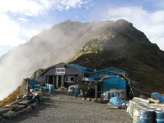 ![]() 北岳肩の小屋から見た甲斐駒ヶ岳、鋸岳 |