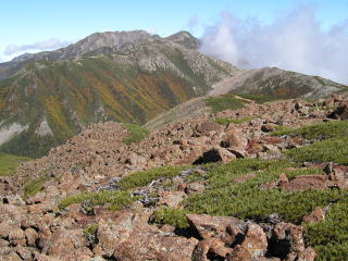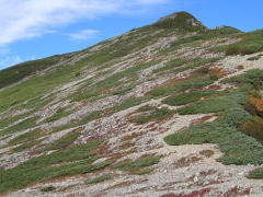 ![]() 北岳肩の小屋から見た仙丈ヶ岳 |