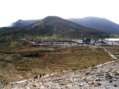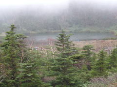 | イモリ池 | 湯釜 | 湯釜から駐車場と逢ノ峰 | 群馬・長野県境の渋峠ホテル |