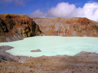 ![]() コバルトブルーの湖水を湛える湯釜 |