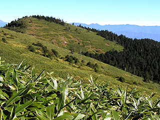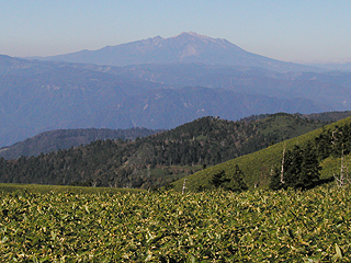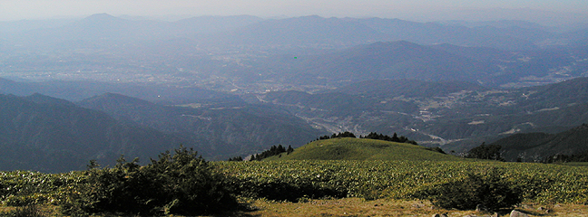 | 笹原の向こうに大きな恵那山が聳える | 神坂山と南アルプス深南部 | 富士見台 |