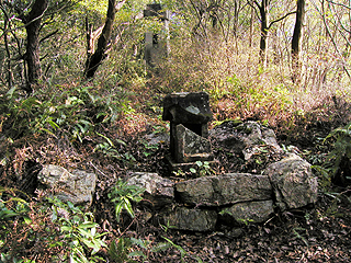 | 山行記 | ●昔、武田信玄がこの山に陣し腕扱きの者を集めて軍議を開いたということから腕扱山の名がついたという。登山口は重川池畔にあり、「うでこき山参道」と刻まれた石碑と案内の矢印の看板がある。 ●のっけから樹林が深く薄暗い中での急坂が続くが、距離は短そうなのでスピードを上げて登ると、わずか10分足らずで山頂に到着してしまった。 ●山頂も薄暗く、どこが山頂なのかわからないが、小さな持込の山名表示があったので、そこが山頂だということにした。山頂には祠や展望台、明治天皇の立像などがあり、かつてはここに来る人も多かったことを偲ばせるが、全て手入れがされていない様子で、今は登る人も少ないのだろう。 ●うっそうとした木々が生い茂る山頂からは、展望台からのみ展望が得られるが、風切山方面はわかるものの、外にこれといった展望は得られない。下山は来た道を戻ることにする。 |
