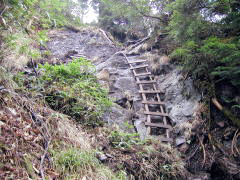 | 裏見の滝駐車場 | 須原尾根分岐 | 手小屋沢避難小屋 | 行者ころげの曲がった木の橋 |