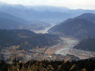 | 白鳥山山頂から見た篠井山 | 白鳥山山頂から見た天使ヶ岳、長者ヶ岳 | 白鳥山山頂から見た富士川 |