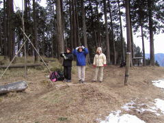 | 山行記 | ●冬の低山歩きの楽しみはなんといっても澄んだ空気の向うに広がる展望だ。特にこの時期は富士の展望を求めて、富士周辺の低山を目指すことが多い。しかし、何年もそれを続けていると行く山がなくなってしまうので、最初は対象としていなかった行程が短すぎたりアプローチがし難かったりという山も対象となってくる。白鳥山も登山としては行程が短すぎるし、あまり情報も無かったので登らなかった山の一つだったが、展望がよさそうだし温泉の楽しみもありそうなのでついに登ることとなった。 ●登山口には駐車場が無いので登山口近くの道路の少し広くなったところに車を停め歩き出す。登山口は民家の間にあるが、目立つ看板が設置されているので迷うことは無い。 ●茶畑や竹林を抜け階段を登れば小さな祠がある七面宮跡地。ここは富士見台とも呼ばれ天気がよければ富士が見えるところだが今日は生憎の天気で残念ながら見ることができない。 ●そこからは尾根伝いに腐葉土でふかふかの道を登り、最後の急登を登りきれば広い白鳥山の山頂に出る。山頂には展望台や狼煙台跡を紹介する案内板、三角点、山梨百名山の山名表示などがあるが、肝心な富士は残念ながら山腹の一部しか見えない。しかし、篠井山、思親山、天使ヶ岳などの近くの山々や富士川の流れは見渡すことができた。 ●富士も見えないし、とても寒いので山頂はそこそこにして下山を開始し、先程の七面宮跡地で昼食兼休憩。下山後は瓜島温泉翠紅苑で温まって帰路に着いた。 |
