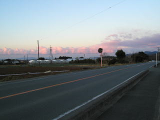 | 朝焼けに染まる本宮山 | 朝焼けの雲 | 西蔵手前の伐採地から見た東三河の山々 |