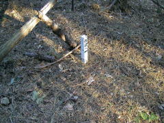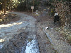 | 林道分岐点 | 西蔵山頂 | 西蔵三角点 | 案内の書かれた白い杭 |