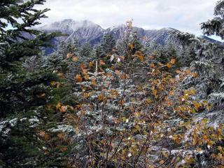 | 紅葉と霧氷の山肌 | ナナカマドと恵那山 | 霧氷の森 |