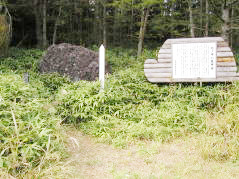 | 山行記 | ●駐車場を探すがなさそうなので、道が少し広くなっているところに駐車して歩き始める。駐車地点から亀甲岩まではすぐで、その先の林道への分岐が登山口だ。舗装はされていないがよく整備された広い林道を歩き、途中の十字路を左に曲がると、林道は終点となり、そこは広場になってた。 ●案内に従い笹の中へ入ると、ところどころでモトクロスのコースが見える。この日は何も走っていなかったが、走る日はぜんぜん印象が違っていただろう。笹と落ち葉の静かな登山道を進むと三角点のある山頂に着く。山頂は、看板や三角点がなければおそらく通り過ぎてしまいそうな平坦な場所にある。三国の境に位置するという山名から期待した展望は、木々に囲まれ全くなかった。 |