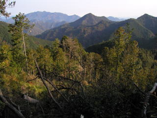 | 山行記 | ●以前下見に訪れたとき登山口が見つからなかった瀬戸山を目指す。今回は二万五千分の一の地形図でよく確認してきたので思っていたよりは簡単に見つけることができた。 ●登山口となっている民家の脇から入っていくと、道はすぐに未舗装の林道になる。林道はやがて終点となり、そこから本格的な登山道になる。 ●沢沿いの登山道は滑りやすく歩きにくいうえにヤブっぽい。道沿いには赤い実を付けたハダカホウズキやスズカアザミ、ノコンギクなどが見られる。その先の、草で覆われた林道を過ぎると道は尾根道となる。道は尾根伝いに登るようになりやがて稜線に出る。 ●稜線の道は大きなアップダウンもなく快適で、展望が開けたところでは、高土山や明神山がよく見える。瀬戸山山頂は三角点と山名の書かれた木杭やプレートが掛けられており北東方面に展望が開けている。下山は往路を戻る。 |