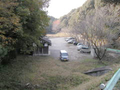 | つり池下の駐車場 | 車止め | つり池 | 参道入口 |