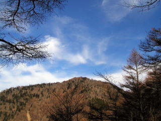 | 山行記 | ●百名山、200名山、300名山は、山を登る者にとっては一応の目標となるが、北海道から屋久島まで全国に散らばっているのでなかなか登りに行くことができない。また、百名山までは、登山道やアプローチがよく整備されているので、それだけに絞り、続けていけば、完登もできるだろうが、200名山、300名山となるとそうはいかない。豊川から日帰りで行くことのできる百〜300名山も既にあまり残っておらず、今回はこの御正体山に登ることにした。 ●駐車場を探し山伏峠のホテル跡地まで行ったが、やはり下調べの通り停められそうもないので、少し戻ったところの駐車スペースに車を停めた。ホテル跡地まで来るとマイクロバスがいて、登山者を下ろしていた。それを見ながらホテル跡地の登山口から登り始める。少し登ると稜線に出て、それを左方向に進む。木の間越しから山中湖を前景にした富士山が見える。天気もよく風もない絶好の登山日和だ。 ●道はやがて石割山方面を分け、奥ノ岳を越えて大きな送電線の鉄塔の下に出る。ここからの眺めは素晴しい。富士山はもちろん、鹿留山、杓子山や三ツ峠山まで間近に見ることができる。ここでしばらくは富士の撮影会。十分写真を撮ったところで先に進む。 ●落葉の落ちきった雑木林の中の道は木の間に青空と周辺の山々が見え、明るく気持ちがいい。また、登山道周辺には枯れたトリカブトが多く見られ、花の最盛期の頃の情景が思い浮かぶ。 ●中ノ岳、前ノ岳と越え、最後の登りを頑張れば御正体山山頂だ。山頂からの展望は木々に遮られよくないが、明るくて居心地がいい。山頂には、三角点や木のイスとテーブル、おなじみの山梨百名山の標柱、祠、各種看板などがあり、とても賑やかだ。 ●食事と休憩でしばらく過ごした後、下山にかかる。いつの間にか曇ってきて富士山が見えなくなっていたが、もう十分見てきたのでそれほど残念には思わなかった。稜線からホテル跡地に下りてくると、どうもここは私有地で通行止めであることを聞かされた。仕方がないので稜線まで戻り。山伏トンネルの反対側へ下り、駐車地点へ向かった。 |