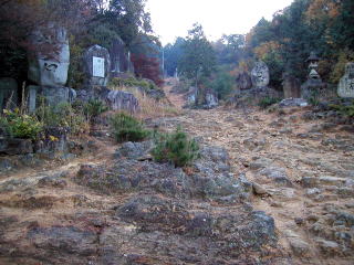 | 登山道沿いの献石群 | 登山道から振り返る麓の街並 | 大宮浅間神社奥宮 |