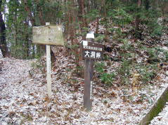 | 雪の残る落ち葉と樹林の中の道 | 大洞峠に車道をまたぐ橋 | 大洞峠 | 山星山山頂 |