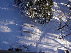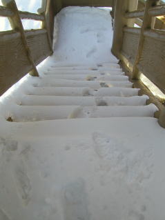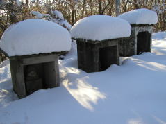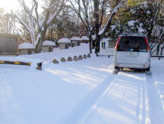 | 展望台から見えるアンテナ群 | 展望台から見下ろすテーブル | 雪の積もった祠 | 野うさぎの足跡 |