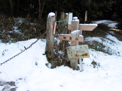 | 山行記 | ●今日は1日日程で愛知の130山に登ることができるので、豊川からは少し遠い尾張の山へ出かけた。まずは物見山を目指す。 ●取壊しの進む愛知万博瀬戸会場がすぐ近くに見える駐車スペースに車を停め林道を歩き出す。 ●途中から湿地のようなところを歩くようになると道がわからなくなった。しばらくいろいろな方向の道を試し正しそうな方向へ進むと踏み後がしっかりしてきてまた林道に出る。 ●ここから物見山へ向かう道をまたまたいろいろ試してみるがよくわからない。仕方がないので林道をそのまま進み、ガイドブックどおり十字路を右に曲がりさらに進むと、雪だるまが置いてある広場に出た。 ●ここからは山頂の案内があったので、それに従えば一登りで物見山山頂だ。山頂には山名札などがなかったが、これ以上先に高いところもなさそうだし、ガイドブックのとおりの木と名古屋方面への展望が開けているので間違いはないはずだ。 ●少しするとマウンテンバイクの集団がやってきた。そういえばガイドブックにも書いてあったし、来る途中いくつもの二輪車のタイヤの後が雪の上に残っていたのを思い出した。マウンテンバイクの集団が一斉に下ってくる前にさっさと広場まで下り、来た道を戻った。 ●今度来る時は、花の咲いている時季に、のんびりと海上の森一帯も含めてまわりたいものだ。 |
